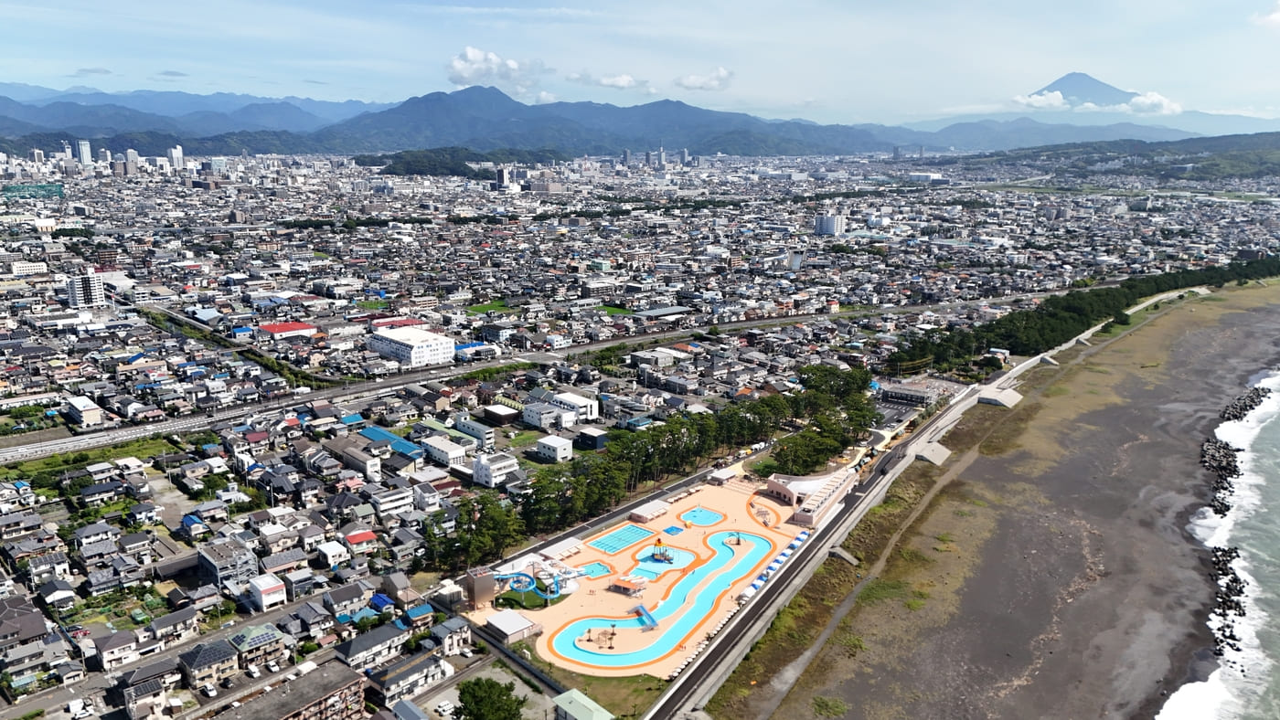 長く親しまれてきた大浜公園市民プールを、思い出と愛着を大切にしながらPFI(BTO+BOO)方式で再生しました。事業ではSPC(特別目的会社)を組成し、小雀建設が代表企業としてSPCの経営管理と建設業務を担当。企画から施工、モニタリングまで切れ目のない体制で事業を推進しています。駿河湾の景観と富士山の眺望を活かした新プールは、親しみを継承しつつ、これからの世代にも長く愛される公共施設として生まれ変わりました。