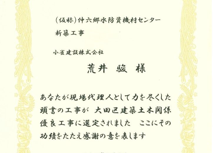 国土交通省関東地方整備局長より表彰状をいただきました。